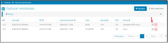 En el mismo módulo de Créditos>Facturar Remisiones, haz clic en Agregar.