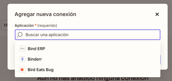 - Paso 3: Usa la barra de búsqueda para encontrar la aplicación Bind ERP,selecciónala y agrega la conexión.