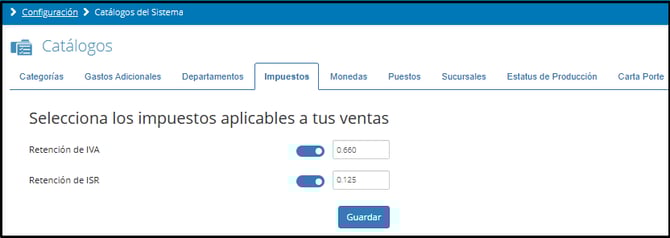 Después, ve a Catálogos del Sistema y selecciona la pestaña Impuestos.