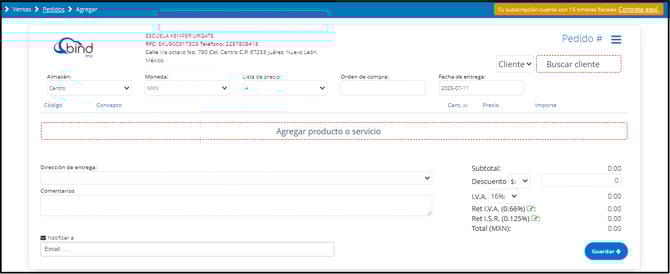 Con esta configuración, los porcentajes de retención de IVA e ISR estarán disponibles al capturar una Venta, cotización, pedido o una Recepción de Mercancía dentro del sistema.