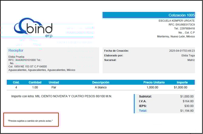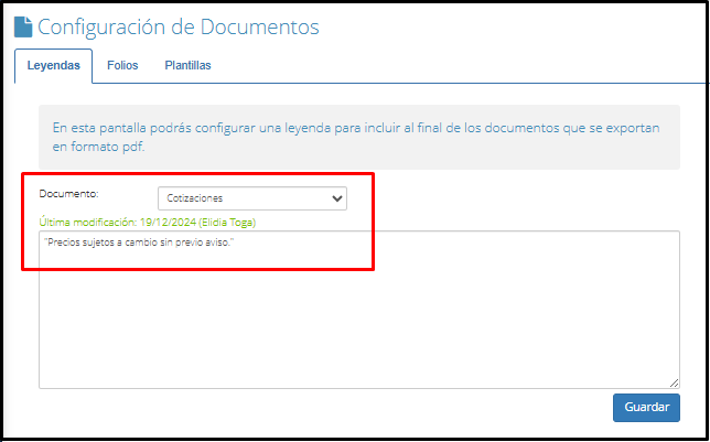 ✅ La leyenda se agregará automáticamente en cada documento del tipo seleccionado, al momento de generarlo o timbrarlo.