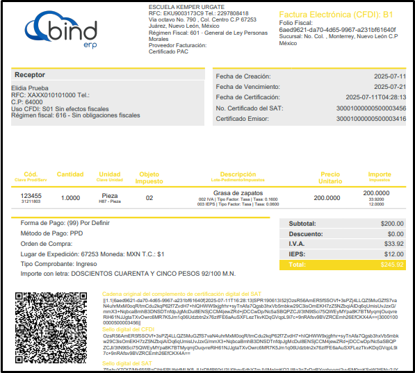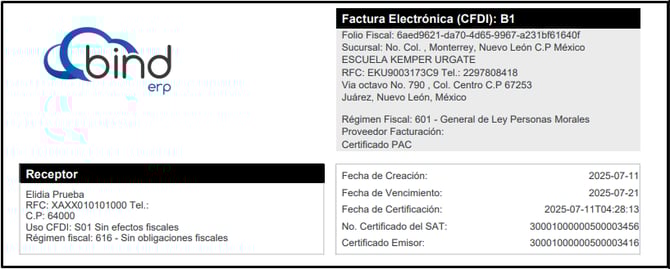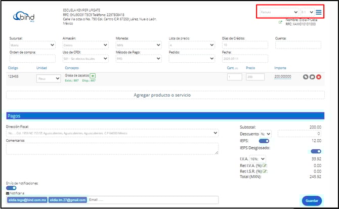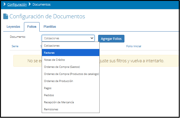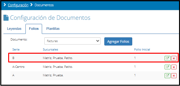 Por ejemplo, si configuraste un folio para Facturas, al generar una nueva, se aplicará automáticamente la serie y número correspondiente.