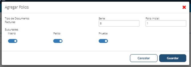⚠️ Es importante que el número de folio inicial sea mayor al último folio ya creado. Por ejemplo, si existe una serie que termina en 1200, el nuevo debe iniciar en 1201 o superior.