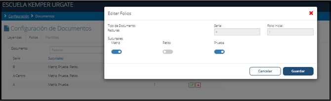 . Se abrirá una ventana igual a la de creación, donde podrás únicamente activar o desactivar las sucursales.